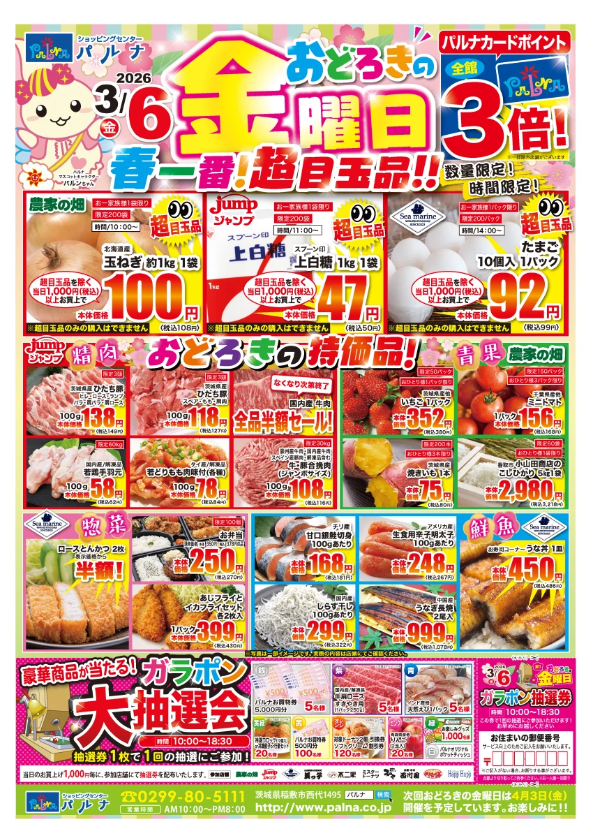毎月第1金曜日はパルナ1F新鮮市場の食料品がお得!